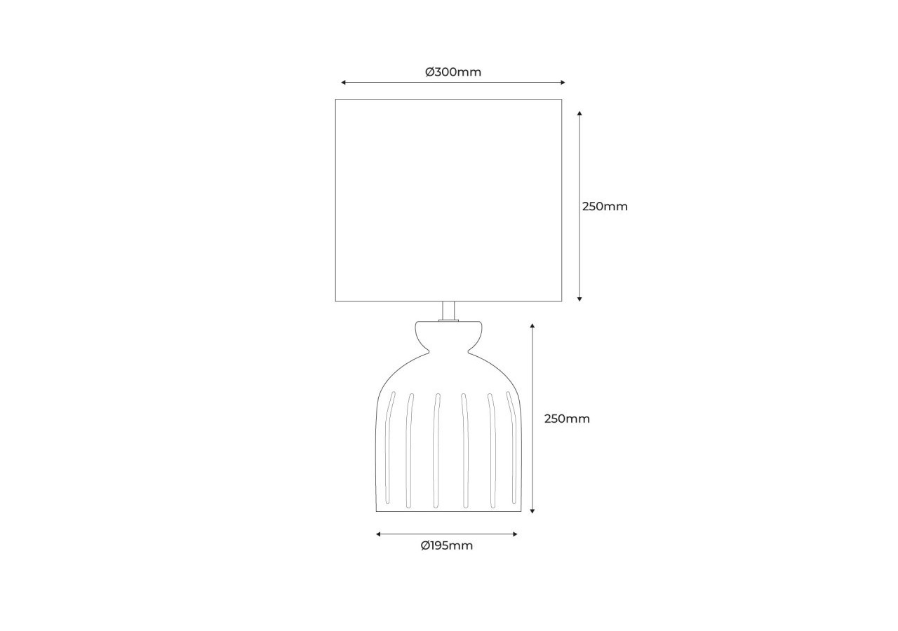 Son pied en céramiquemesure 195x195x250 mm, et son abat-jour 300x300x250 mm. Elle est fournie avec un câble d'alimentation doté d'un interrupteur.