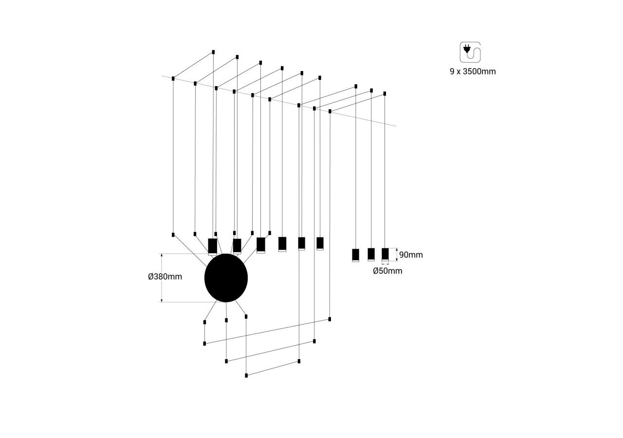 L'installation est simple : une fois la configuration souhaitée choisie, la rosace centrale est montée sur le point lumineux, puis les crochets de décentralisation sont installés à l'aide des chevilles et des vis incluses. Enfin, les câbles sont montés sur chaque crochet préalablement installé