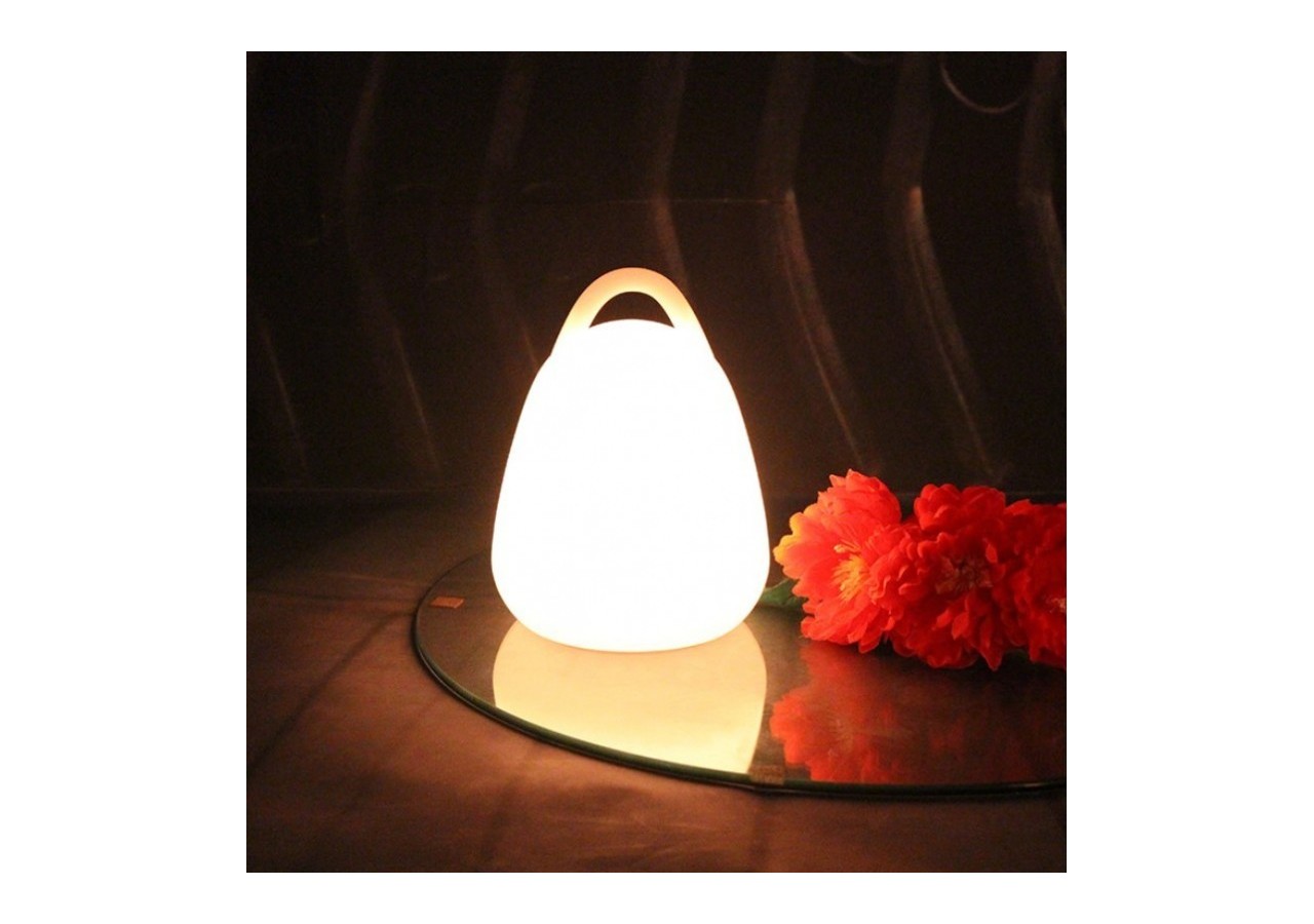 Jolie lampe décorative certifiée IP65, utilisable en intérieur comme en extérieur. Grâce à sa anse intégrée et à sa batterie rechargeable,ellese transporte facilement et se dépose où bon vous semble au gré de vos déplacements. Cette lampe sans fil dispose grande autonomieet offre un éclairage LED multicolore ajustable à l'aide de la télécommande fournie.