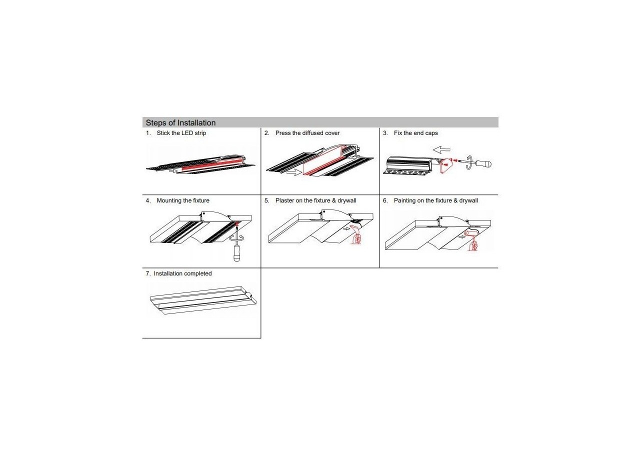 Sa couleur est blanche et peut être peinte de n'importe quelle couleur. Lumière indirecte, non éblouissante et uniforme. Parfait pour les projets commerciaux ou domestiques. Idéal pour les plafonds ou les murs des magasins, des hôtels, des supermarchés, les escaliers ou toute autre pièce de la maison. Ils se distinguent par leur installation sur les murs ou les plafonds sans montrer les cadres en aluminium, les coutures ou les bords.