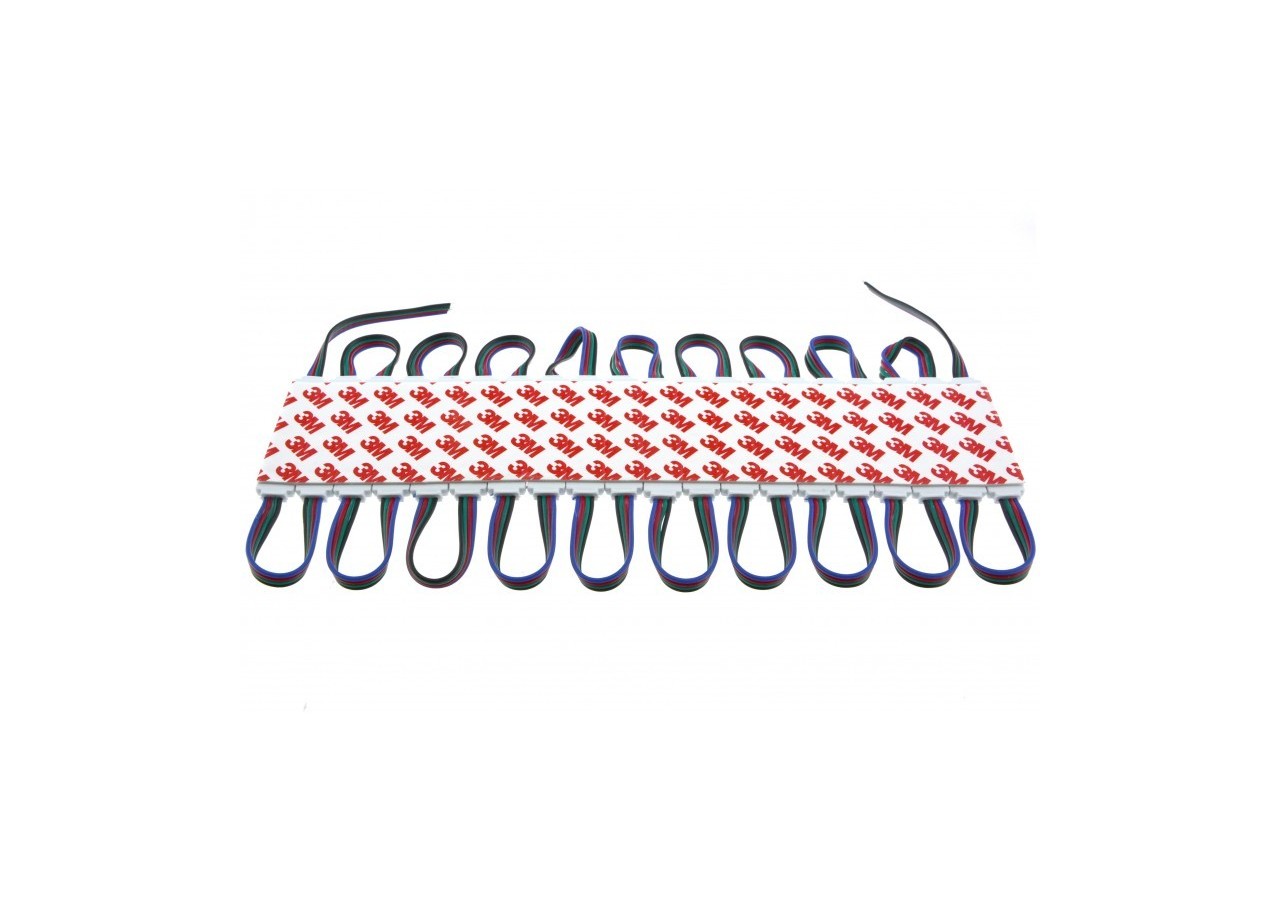 Ces petites puces LED RGB sont la solution parfaite pour rétro éclairer une enseigne ou un panneau publicitaire. Ils contiennent des LED encapsulées dans une sorte de pilule en plastique reliées entre elles par un câble électrique d'un module de LED à l'autre. Chaque module LED RGB est livré avec un autocollant 3M, très facile à séparer et à installer. Vous enlevez la protection plastique du 3M et vous la collez à l'endroit où vous voulez installer les modules, en créant des formes ou une ligne. Ils peuvent être installés à l'extérieur grâce à leur degré de protection IP65.