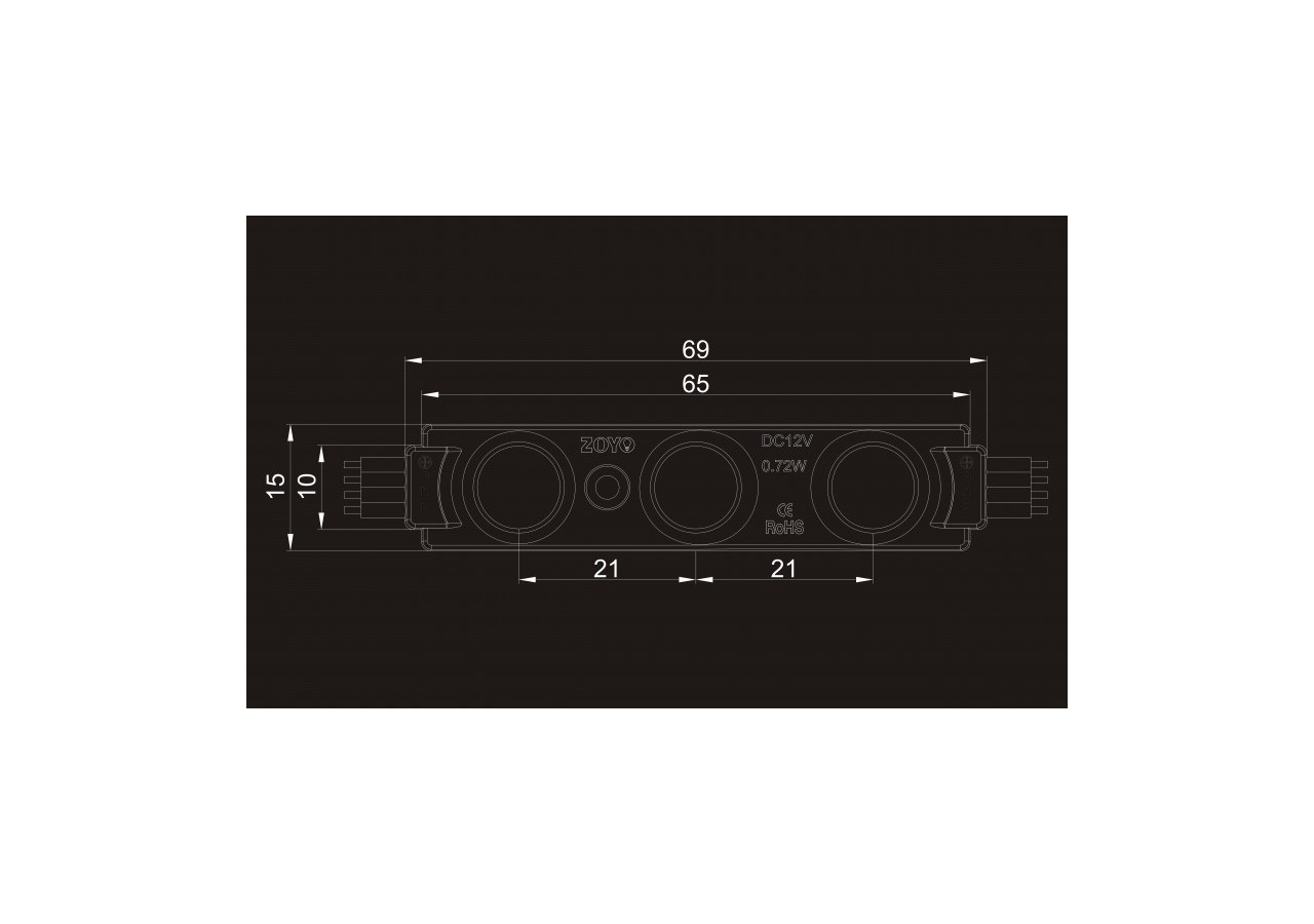 Malgré sa petite taille, ayant 3 puces par module, avec une puissance de 0,72W. Idéal pour le rétroéclairage de panneaux ou de bannières publicitaires. Pour son utilisation correcte, il est nécessaire de brancher une alimentation de 12V et un contrôleur RGB.