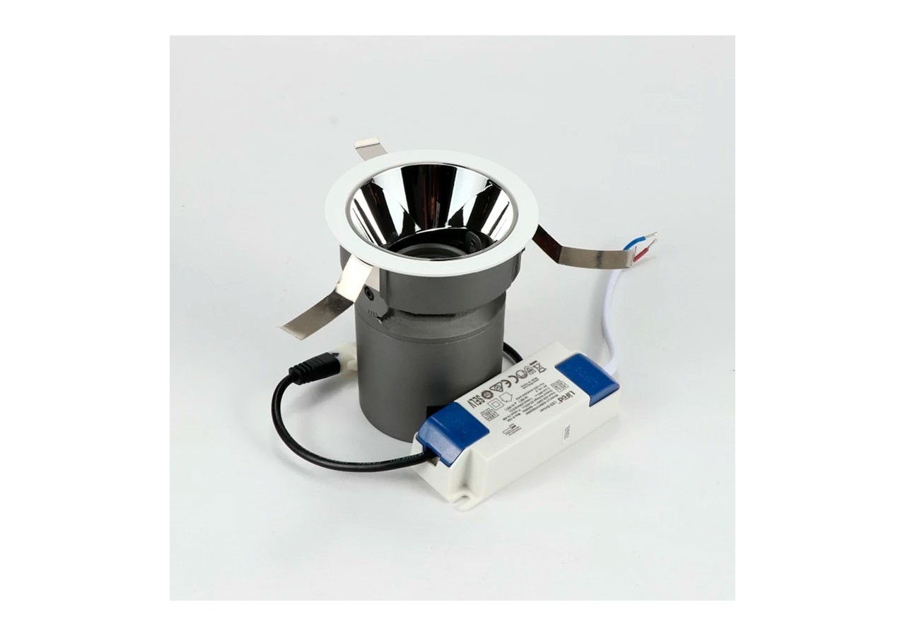 Spot LED novateur offrant un éclairage homogène grâce à des puces LED COB Citizen à haut rendement de 1253 lumens pour 20W. Diffuseur anti-reflets et driver Lifud intégré contribuant à une qualité d'éclairage supérieure. Température de couleur chaude de 2700 degrés Kelvin, idéale pour créer un atmosphère lumineuse conviviale et apaisante. Tension de 200-240V/CA.
