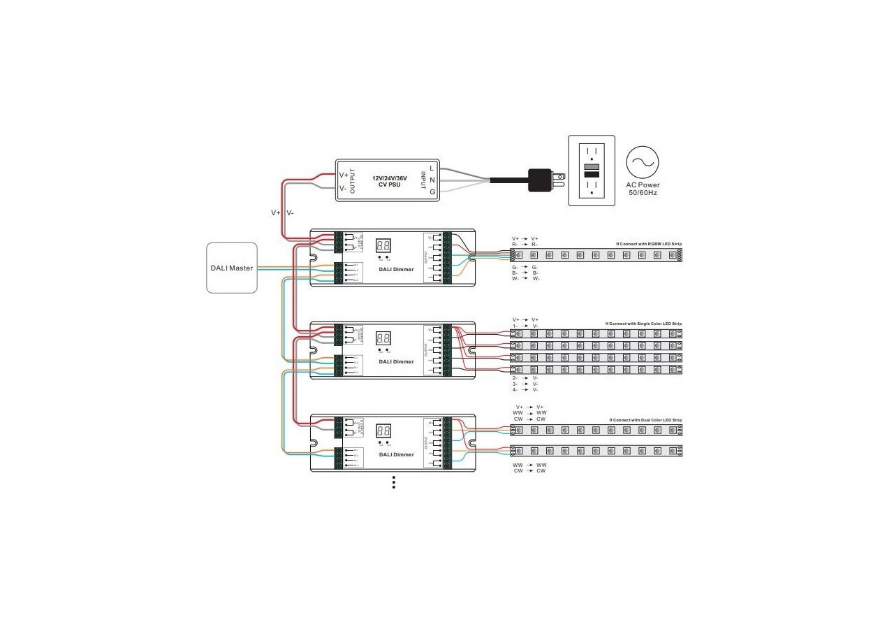 - Variateur DALI à tension constante avec 4 canaux, 8A par canal de sortie disponible en 12V-DC, 24V-DC et 36V-DC.