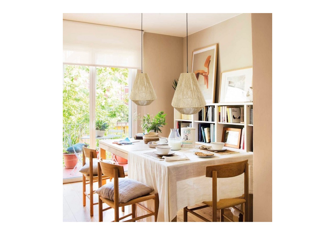 Les décorations naturelles mêlant le bois, le bambou et la corde sont dans l'air du temps. Elles apportent douceur et sérénité et contribuent à belle une atmosphère bohème.