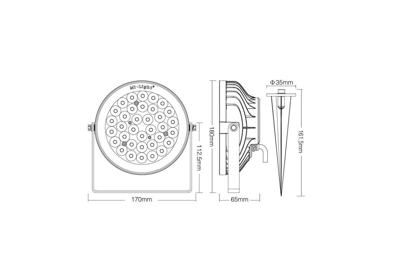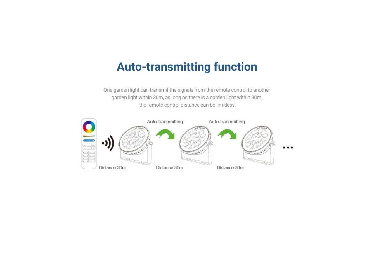 Ce projecteur LED offre une large gamme d'options de contrôle pour une expérience d'éclairage personnalisée. En utilisant une télécommande RF 2,4 GHz (non incluse), il est possible de choisir parmi des millions d'options RGB pour ajuster la couleur. De plus, il permet de régler la luminosité, la saturation et la température de couleur en blanc, variant du blanc chaud (2700K) au blanc froid (6500K).
