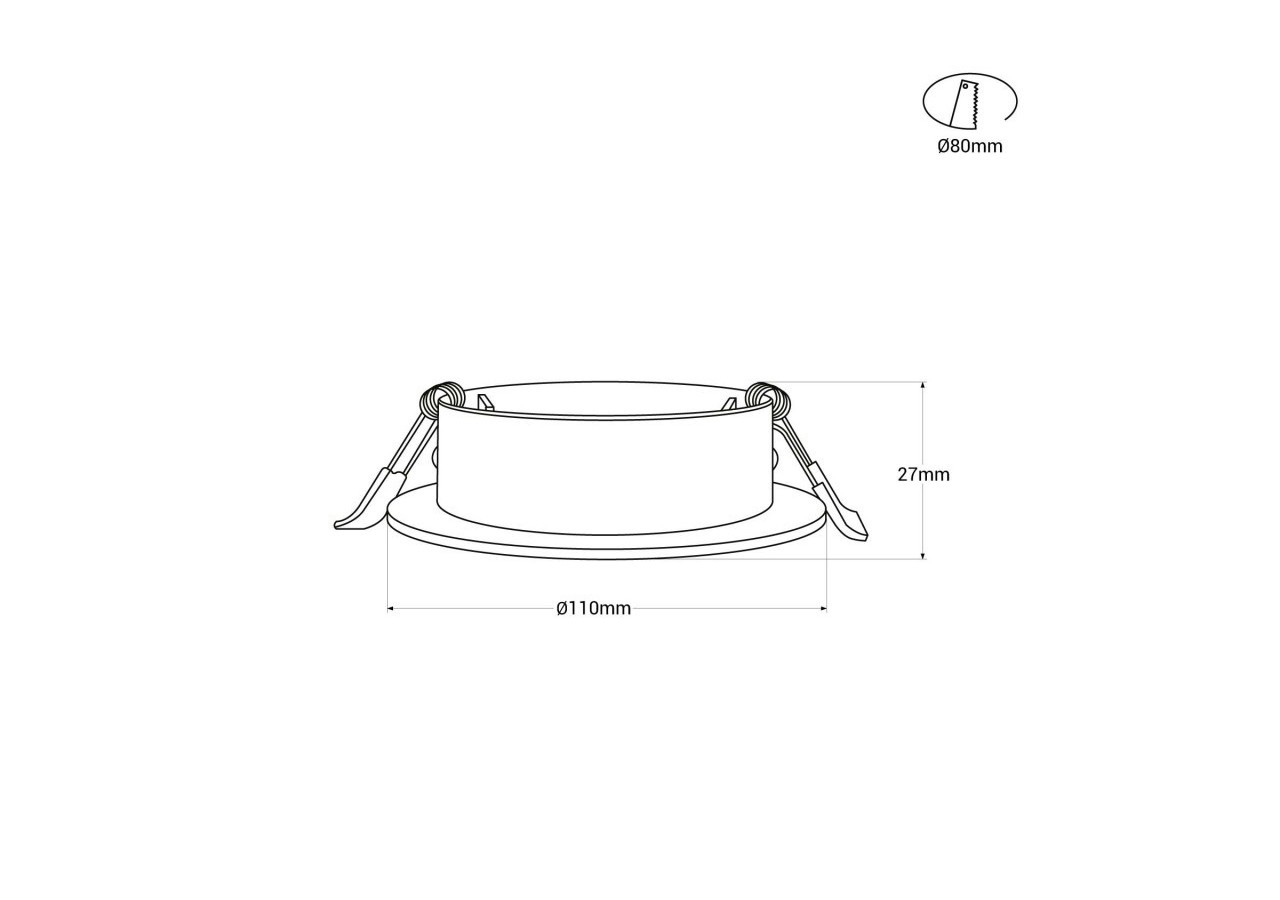 Support GU10 au design sobre et discret en polycarbonate de dimensions ø 110x27mm. Prévoir une découpe au plafond de ø 80mm pour son encastrement. Compatible avec tous types de spots LED GU10/MR16 ou modules avec driver externe.