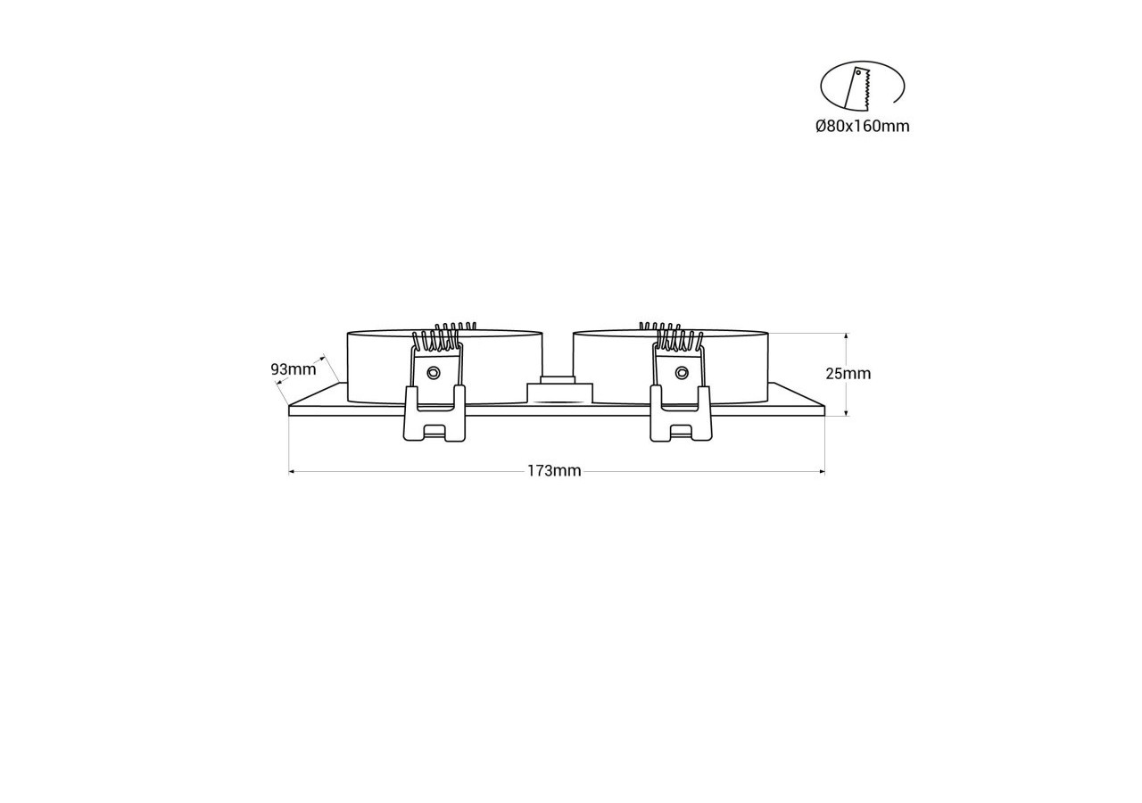 Esthétique élégante et légère, très flexible et facile à manipuler. Fabriqué en polycarbonate, il sera complètement intégré au plafond après son installation. Avec une taille de 173x93x25mm et un diamètre de coupe de ø 80x160mm. Installation et compatibilité étendue avec les ampoules GU10 ou les modules avec driver externe.