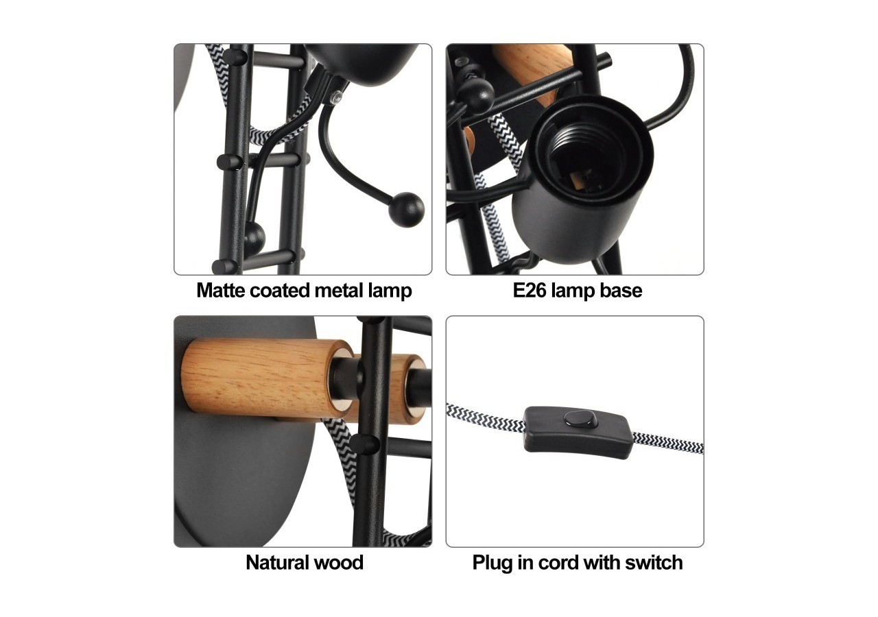 Ces appliques murales sont certifiées IP20 : elles sont à utiliser en intérieur exclusivement. Le corps du personnage n'est autre que la douille, surmontée d'une ampoule LED E27 en guise de tête (puissance max. admise de 40W). L'ampoule n'est pas fournie, afin que vous puissiez laisser libre cours à votre créativité. Quel que soit votre choix, il est conseillé d'opter pour une ampoule LED car plus écologique, plus économique et plus durable.