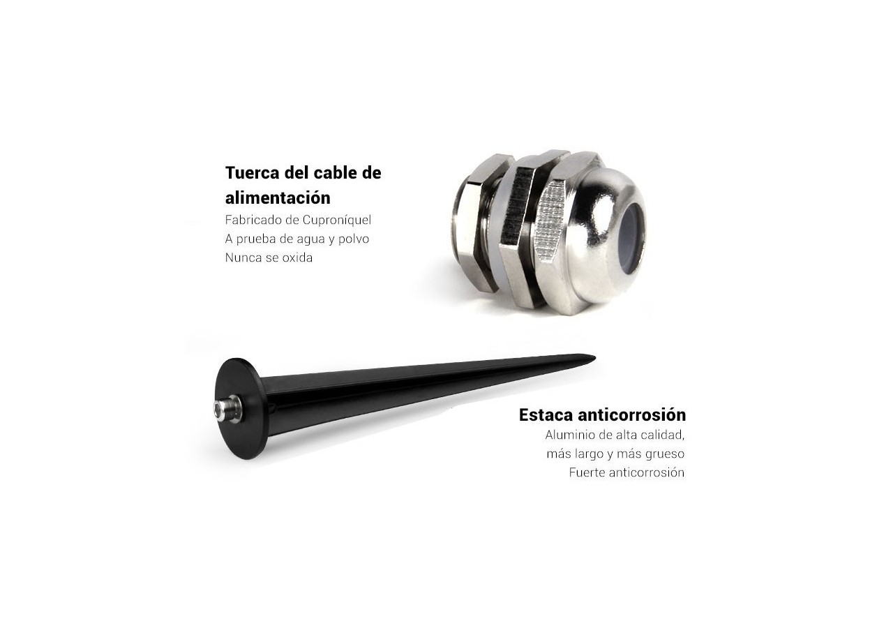 Avecsa structure en aluminium traitée contre l'oxydation, notre Spot LED extérieurest un produit robuste conçu pour durer. Il est waterproof (indice de protection étanche IP66), et peut donc s'utiliser en extérieur en toute sécurité. Son piquet métallique de dimensions ø 35x161,5 mm permet d'ailleurs de le planter dans la terre, que ce soit sur une pelouse, dans une jardinière ou autre. L'angle d'ouverture de ce projecteur LED de jardin est de 15º, et sa portée lumineuse est de 10 mètres. Ce projecteur RGB + CCT est la solution d'éclairage extérieur idéale, compatible avec l'ensemble des contrôleurs Mi-Light RGB+CCT. Son optique a été pensée pour limiter l'éblouissement, et émet un faisceau lumineux puissant et symétrique. Grâce à l'excellente capacité de sa structure à dissiper la chaleur, la durée de vie utile de ce luminaire LED est prolongée et peut dépasser les 50 000 heures. Le presse-étoupe du câble d'alimentation est encupro-nickel (un alliage résistant à l'eau et à la poussière, qui ne rouille pas).