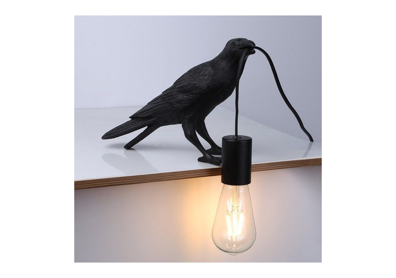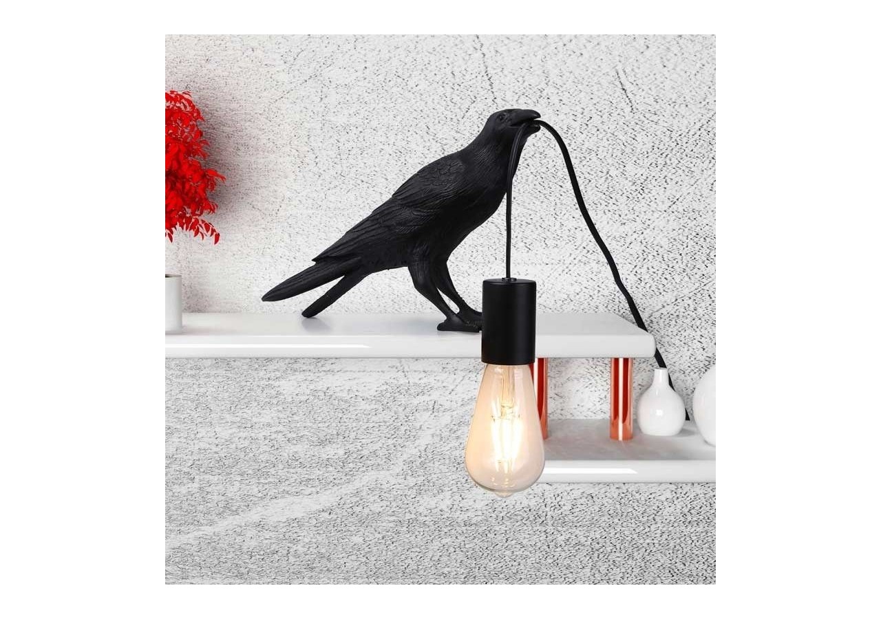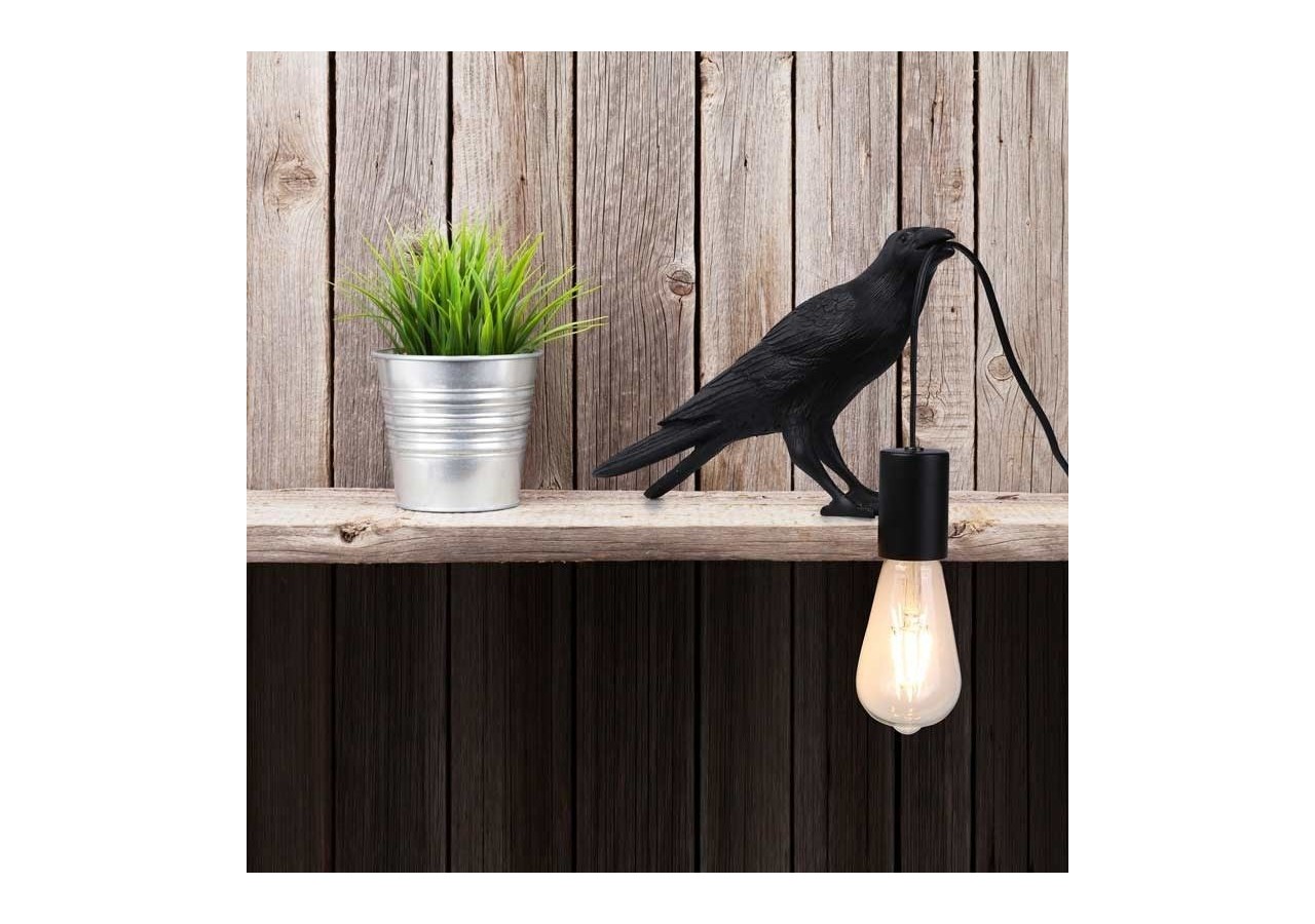 Elle s'inspire de la silhouette d'un corbeau, finement sculptée, tenant le câble d'une ampoule dans son bec, créant ainsi une scène animée et unique qui apporte une touche distinctive à n'importe quel espace. Grâce à son style artistique et ludique, cette lampe deviendra un véritable atout dans votre maison ou votre bureau.