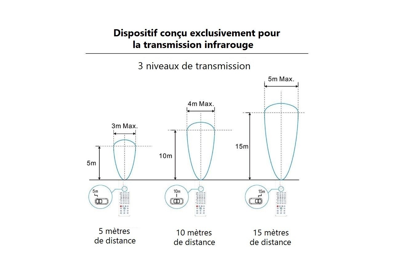 - Zone de détection :La télécommande vous permet de définir la zone de détection du capteur dans une plage de 5 à 15 mètres, offrant une personnalisation adaptée à votre espace.
