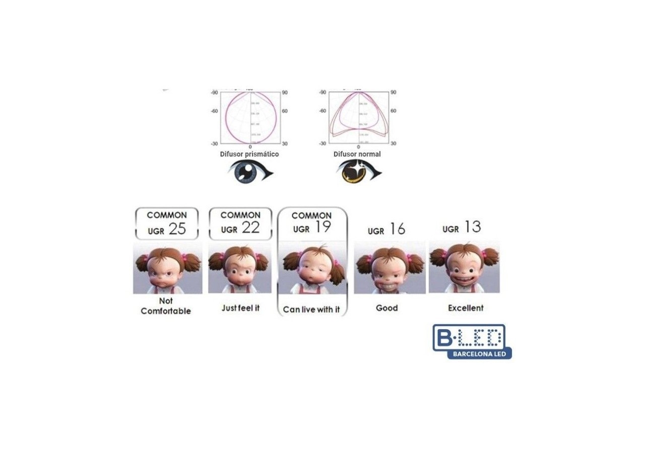 Faible UGR; CRI>90