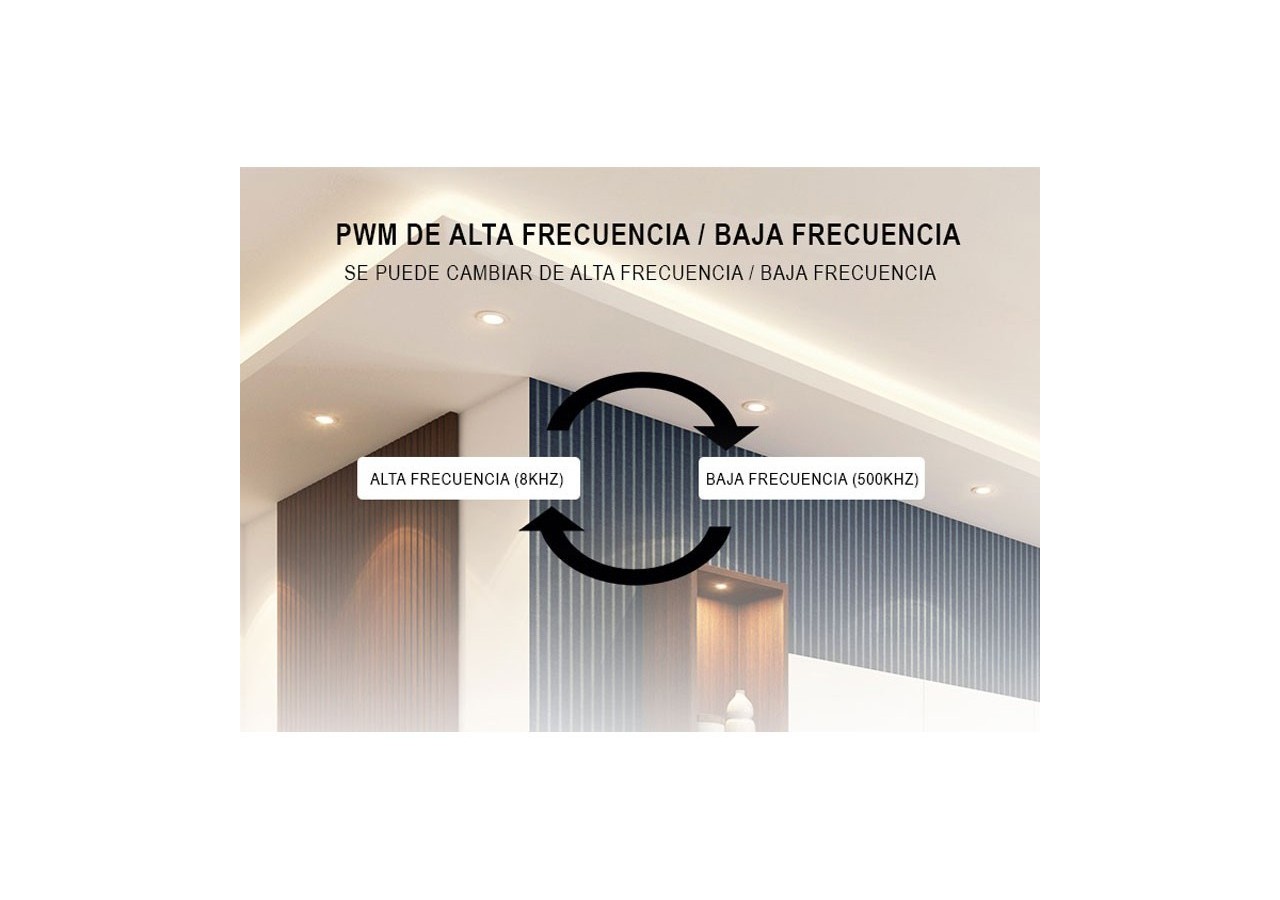Con el controlador monocolor podrás regular el brillo, la temperatura de color, de 2700K a 6500K, aumentar o disminuir la frecuencia, etc. Controla y regula, de forma cómoda, rápida e intuitiva.