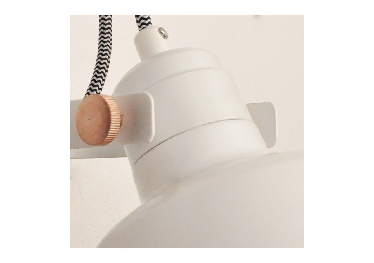 Avec douille E14, puissance maximale de 60W, ampoule non incluse. En aluminium avec câble tressé noir et blanc. Dimensions : 150 mm de large, 180 mm de haut et 280 mm de profondeur. Exclusif pour une utilisation en intérieur avec un degré de protection IP20.**Ampoule E14 non incluse**.