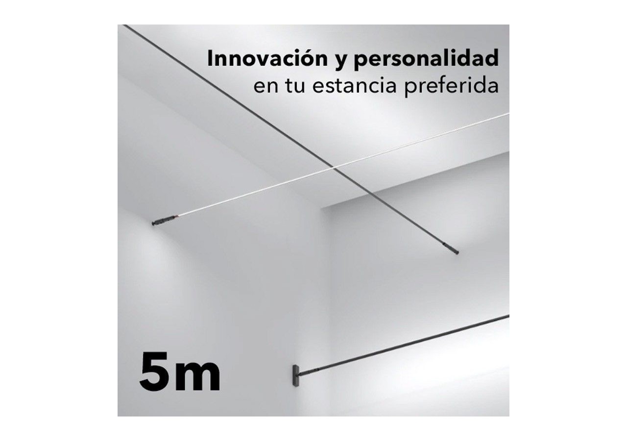 Kit complet SKYlinepour créer unéclairage linéaire en suspensioninnovant. La technologie d'éclairage linéaire suspendu SKYline offre un aspect unique et professionnel avec de multiples possibilités d'installation. D'une longueur de 5 mètres, il peut être utilisé comme lèche-mur, comme éclairage indirect ou comme lumière directe.