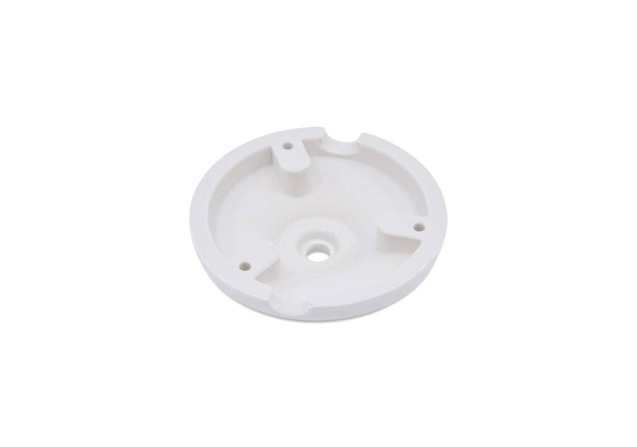 Rosace en céramique ronde de haute qualité. Elle possède un trou pour la sortie du câble, deux trous sur les côtés pour avoir la possibilité de la relier avec d'autres fleurons, et trois trous pour la fixer au plafond avec trois vis.