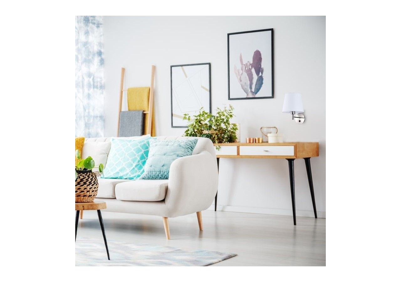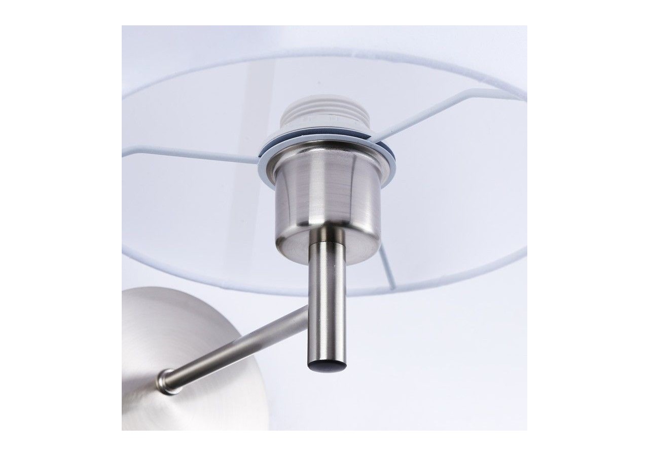 Applique murale avec interrupteur "Riga" au design classique et raffiné dont l'esthétique s'intègre à tous les intérieurs. Disponible en 4 combinaisons de couleurs : noir, blanc, abat-jour blanc avec support argenté et abat-jour en lin avec support noir. Idéal pour être installé dans les tête de chambres où il offrira un éclairage décoratif et chaleureux.