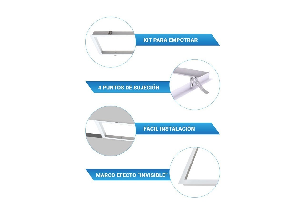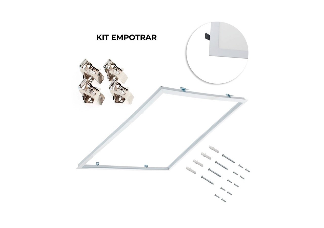 Comprend le kit d'encastrement, le cadre, les agrafes, les vis (1200x600mm), avec tous les accessoires pour un montage rapide et facile.
