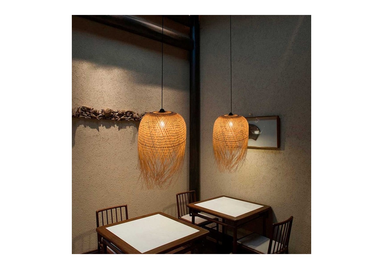 La suspension "JAVA" est un chef-d'œuvre artisanal réalisé en fibres de rotin soigneusement tressées. Sa forme évasée unique et ses bandes entrelacées de rotin naturel confèrent à cette suspension une structure à la fois robuste et élégante.