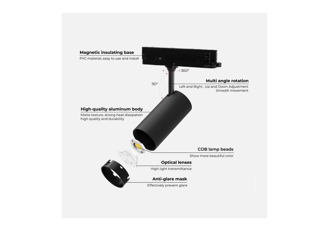 Le spot LED 30W conçu pour rail triphasé incarne l'excellence lumineuse avec un design compact et contemporain.