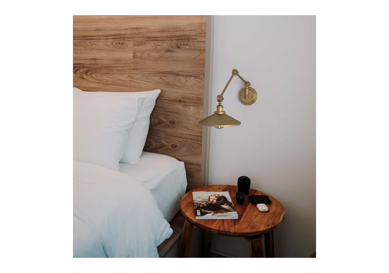Dotée d'un bras extensible et d'un abat-jour articulé, cette applique offre une flexibilité remarquable pour ajuster précisément la direction de la lumière selon les besoins spécifiques de chaque espace.