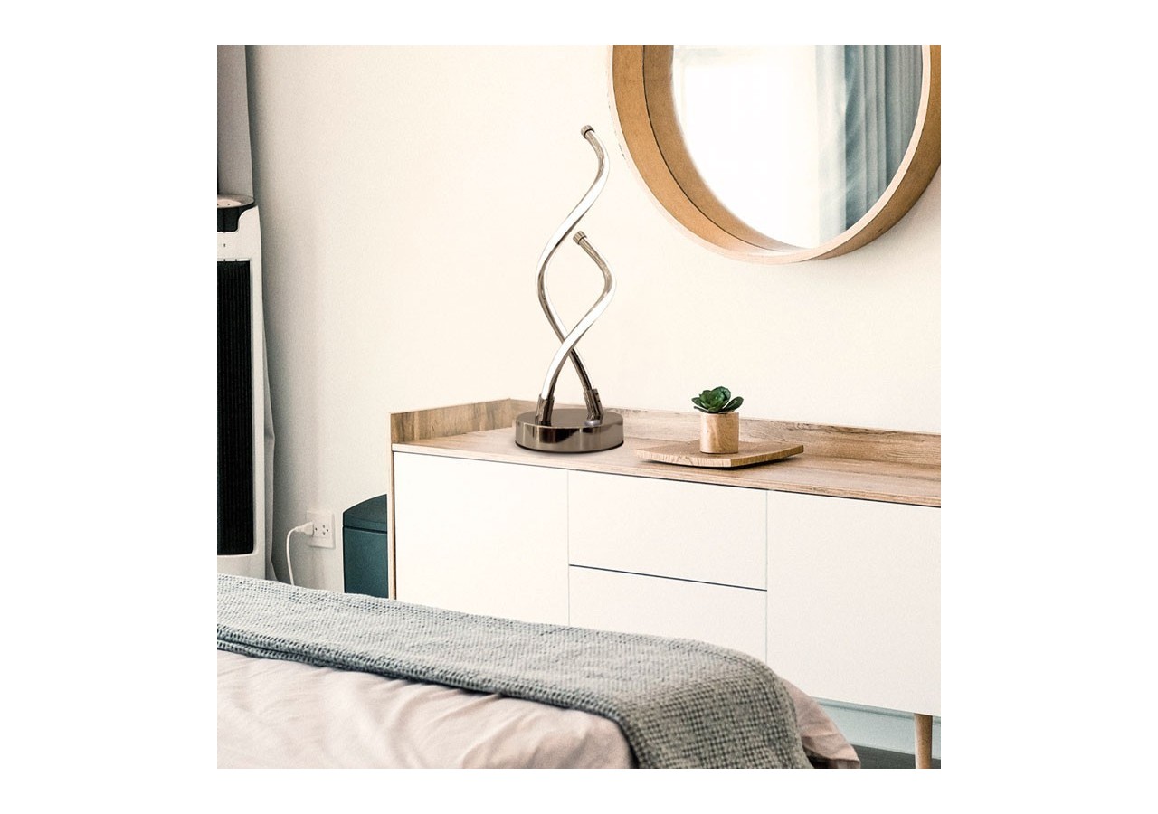 Lampe de table à intensité variable avec LED intégrée de 8W. Avec un design minimaliste et moderne, elle est parfaite pour être combinée avec des styles décoratifs contemporains.