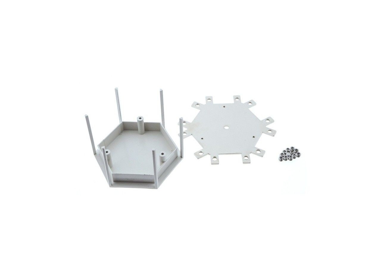 Connecteur central pour linéaires LED permettant la création de figures hexagonales (60º) en couplant jusqu'à 6 linéaires de manière radiale.