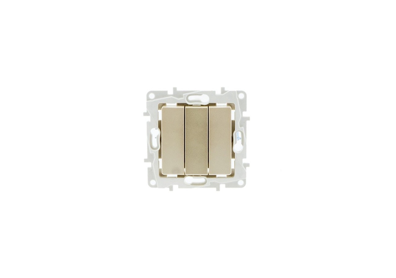 Mécanisme de triple interrupteur 1 voie (non commuté), conçu pour s'encastrer dans un boîtier de fixation standard. Un système de bornes de connexion rapide permet un câblage simplifié, sans vis.Disponible en blanc ou ivoire.