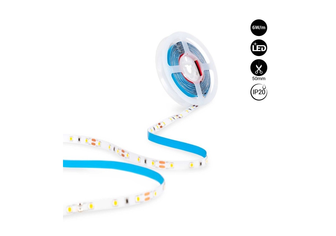 Ruban LED monochrome 12V DC de faible puissance (6W/m). Il est disponible en blanc chaud et blanc froid.