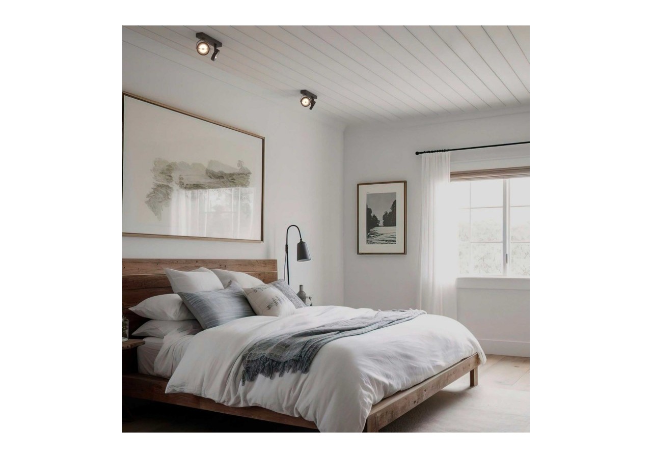 Plafonnierconçu pour 2 ampoules AR111 à culot GU10. Les têtes sont orientablespour une meilleure répartition du halo de lumière. Disponible en noir et blanc.