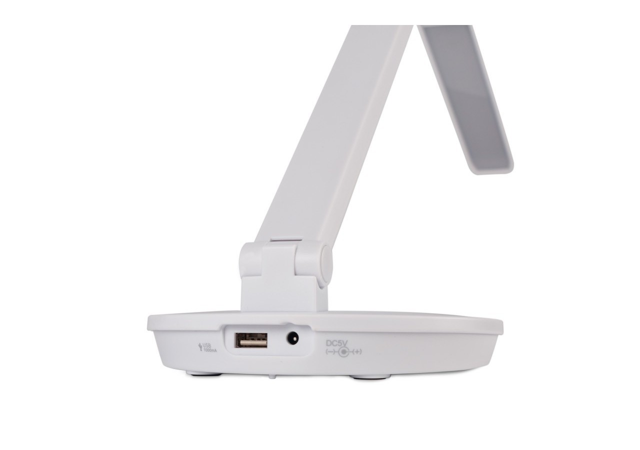 Elle est équipée d'un port USB pratique pour recharger vos appareils mobiles. De plus, elle offre la flexibilité de régler la température de couleur et l'intensité lumineuse grâce à un système tactile intuitif situé sur sa base.