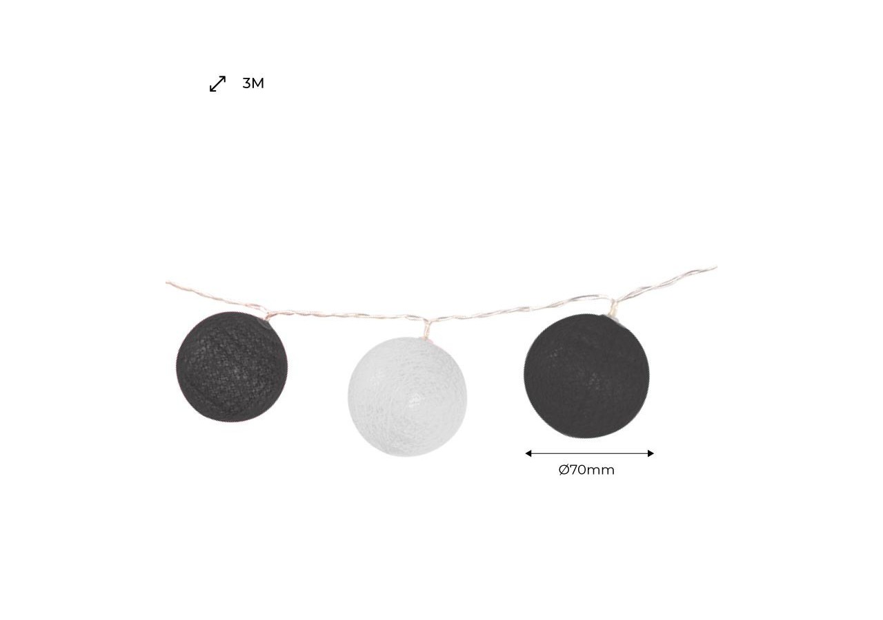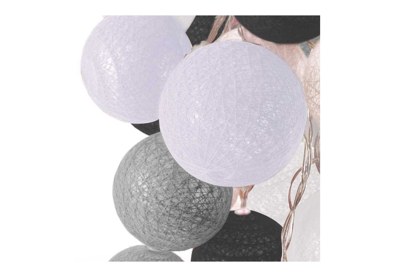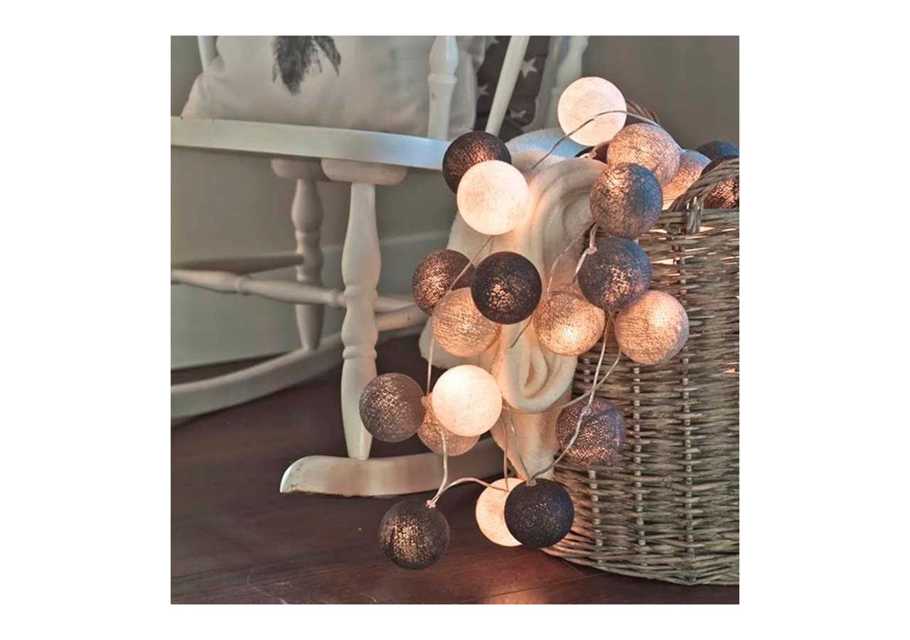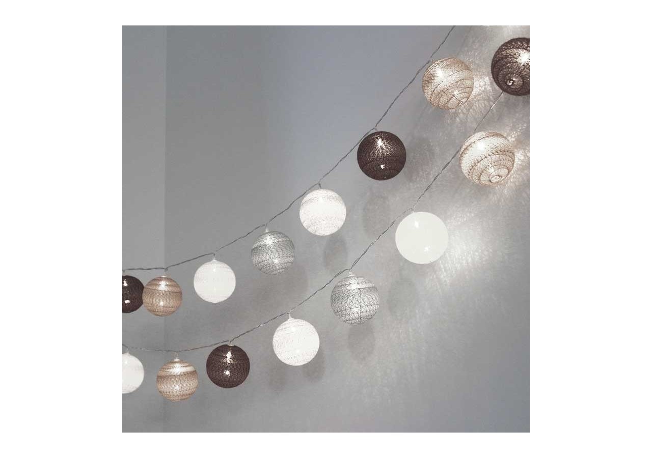 Guirlande lumineuse exterieur d'une longueur totale de 290 cm,composée de 24 boules de 7 cm de diamètre. Elle diffuse une lumière blanc chaud (2700K) agréable et intimiste. Très décorative avec ses boules en coton coloré, cette guirlande lumiere apportera la touche finale parfaite à votre chambre, salon, terrasse couverte, etc. Indice de protection IP44,se branchepar USB.