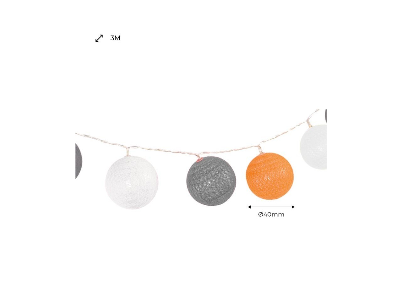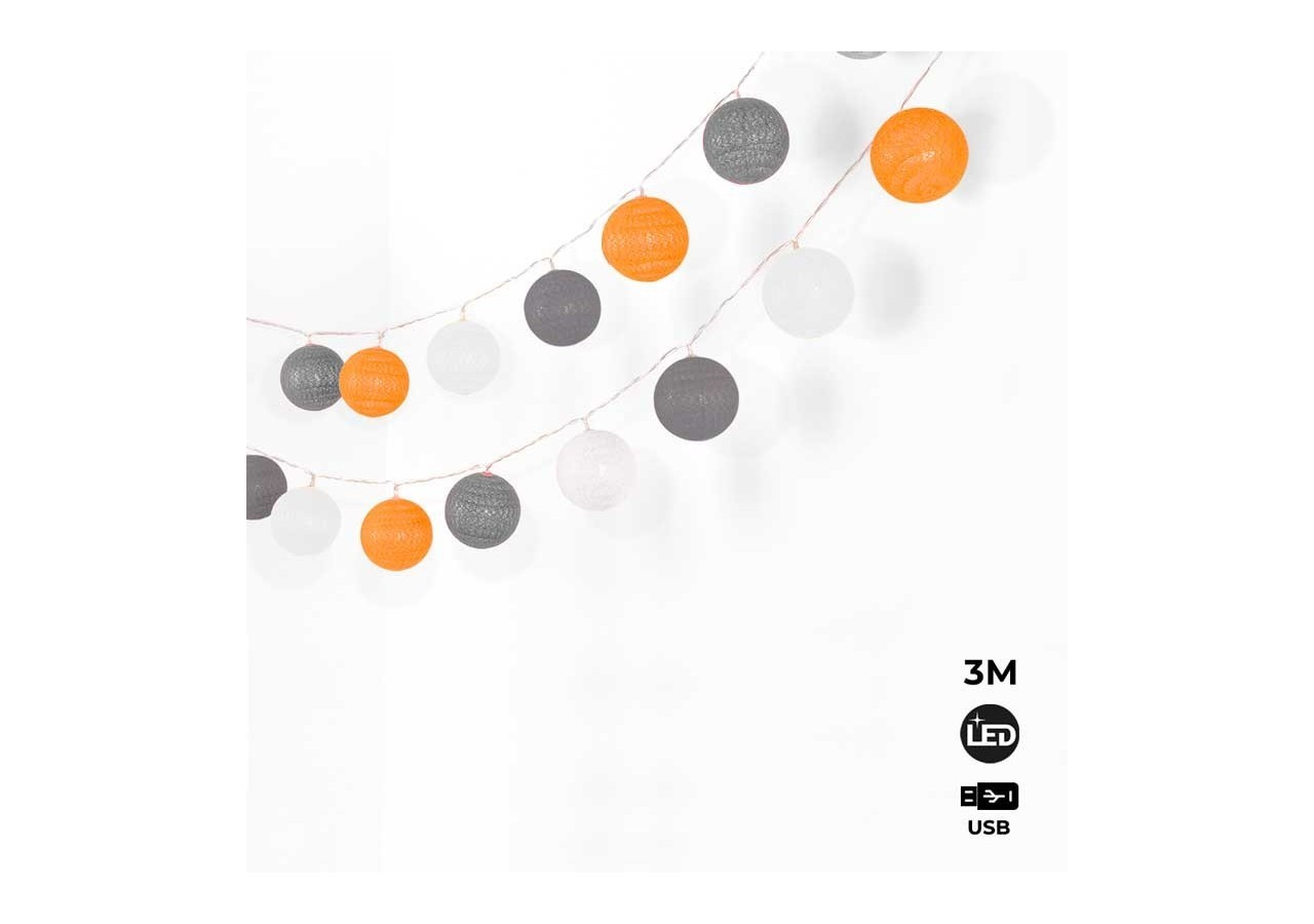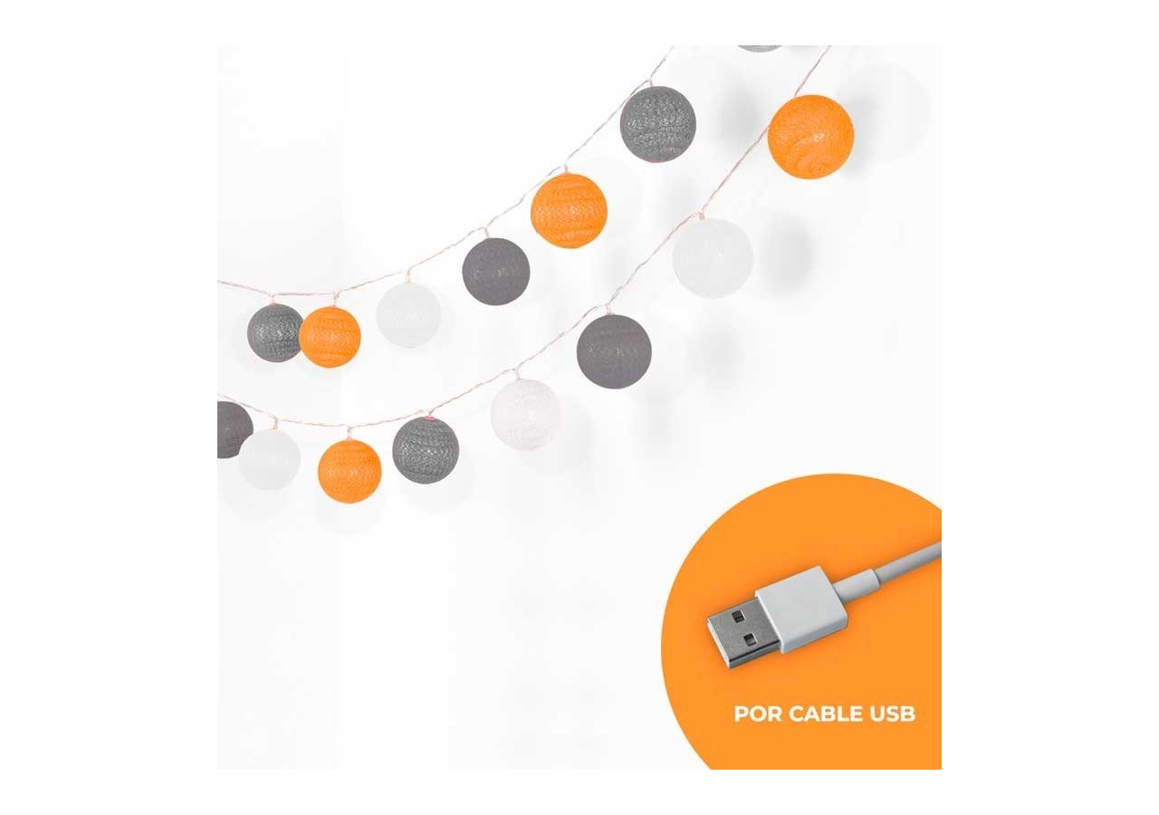 Cette jolie guirlande boule lumineusede 315 cm se compose de 20 boules LED en coton tissé de 4 cm de diamètre. Elle diffuse une agréable lumière blanc chaud (2700K), idéale pour créer une ambiance intimiste dans une chambre, un salon, une terrasse couverte, etc. Très gaie et décorative avec ses couleurs éclatantes, notre guirlande limineuse guinguette est disponible en plusieurs déclinaisons. Indice de protection IP44, avec priseUSB.