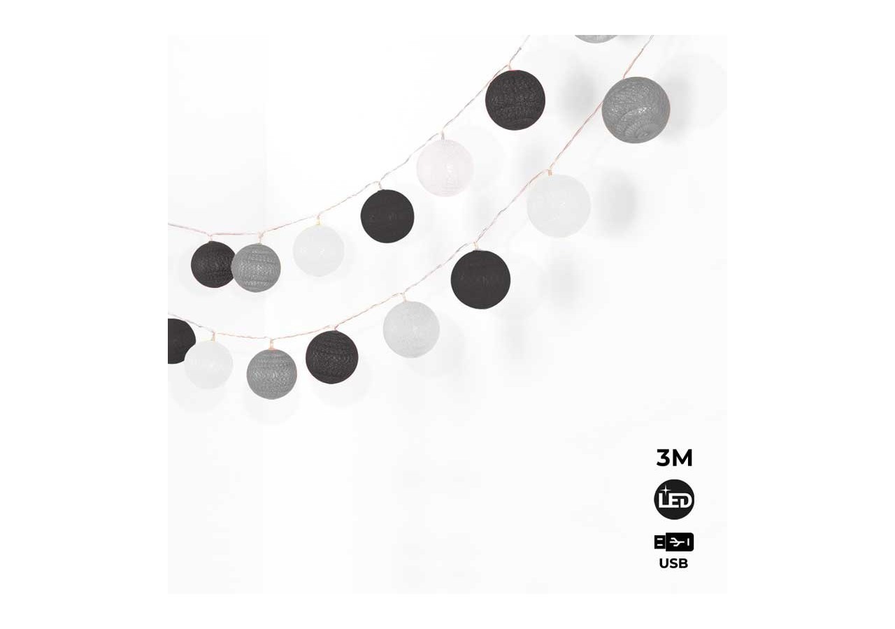 Guirlande boule lumineuse 3mètres IP44 Prise USB - B2044-WKG - Barcelona LED