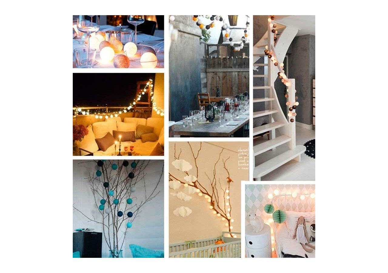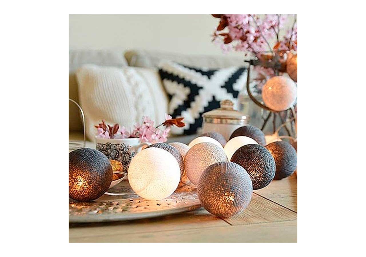 Cette jolie guirlande boule lumineusede 315 cm se compose de 20 boules LED en coton tissé de 4 cm de diamètre. Elle diffuse une agréable lumière blanc chaud (2700K), idéale pour créer une ambiance intimiste dans une chambre, un salon, une terrasse couverte, etc. Très gaie et décorative avec ses couleurs éclatantes, notre guirlande limineuse guinguette est disponible en plusieurs déclinaisons. Indice de protection IP44, avec priseUSB.
