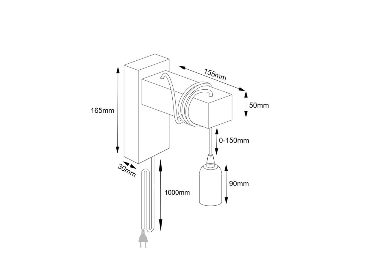 Applique murale en bois et métal, au design minimaliste d'inspiration scandinave. Elle se compose d'une base métallique et d'un corps en bois, autour duquel s'enroule un câble terminé par une douille pour ampoule E27. Luminaire disponible en deux déclinaisons (blanc et noir).