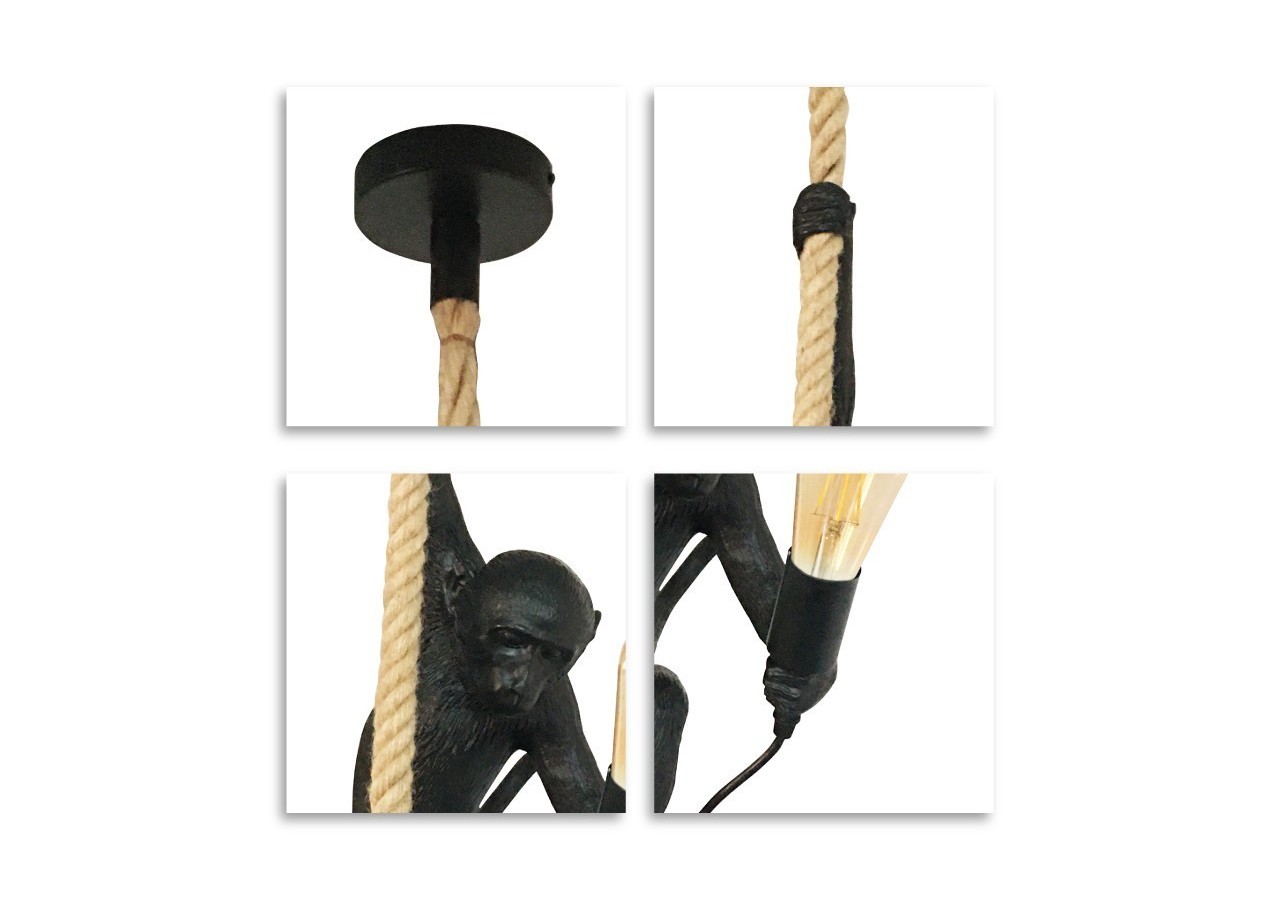 La lampe suspendue "Ximpa" en résine, représentant un singe accroché à une corde et tenant une ampoule, est une pièce de design amusante et audacieuse qui ne manquera pas de vous séduire.