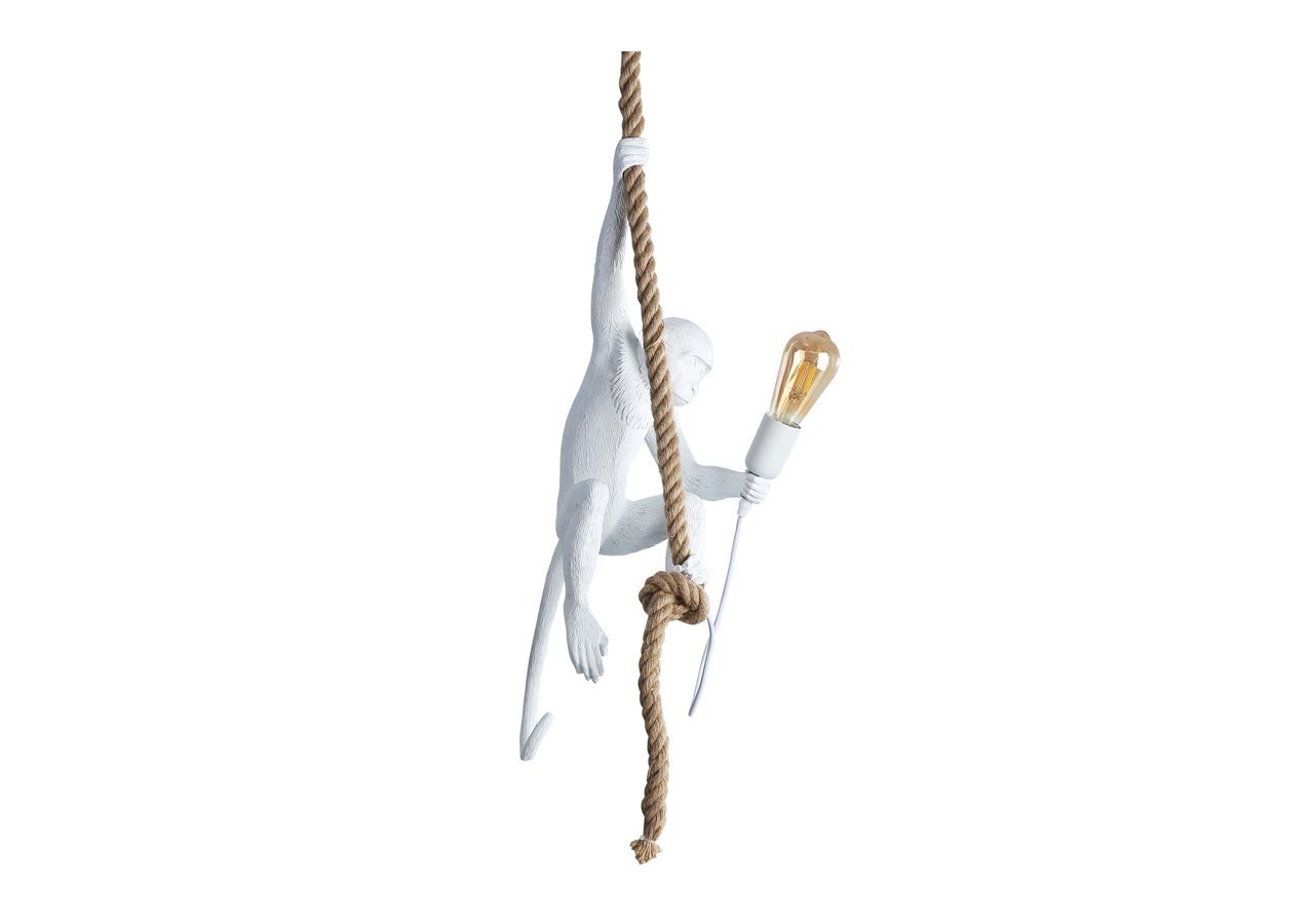 La lampe suspendue "Ximpa" en résine, représentant un singe accroché à une corde et tenant une ampoule, est une pièce de design amusante et audacieuse qui ne manquera pas de vous séduire.