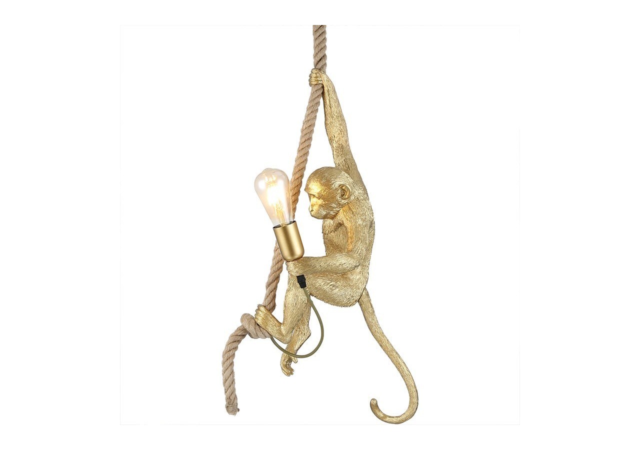 La lampe suspendue "Ximpa" en résine, représentant un singe accroché à une corde et tenant une ampoule, est une pièce de design amusante et audacieuse qui ne manquera pas de vous séduire.