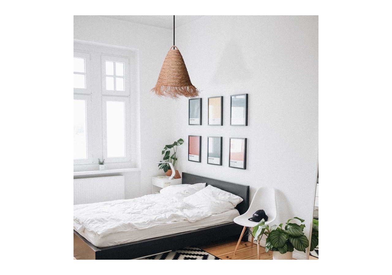 Suspension de style naturel, fabriquée à la main en fibres de seagrass, résistantes et durables.