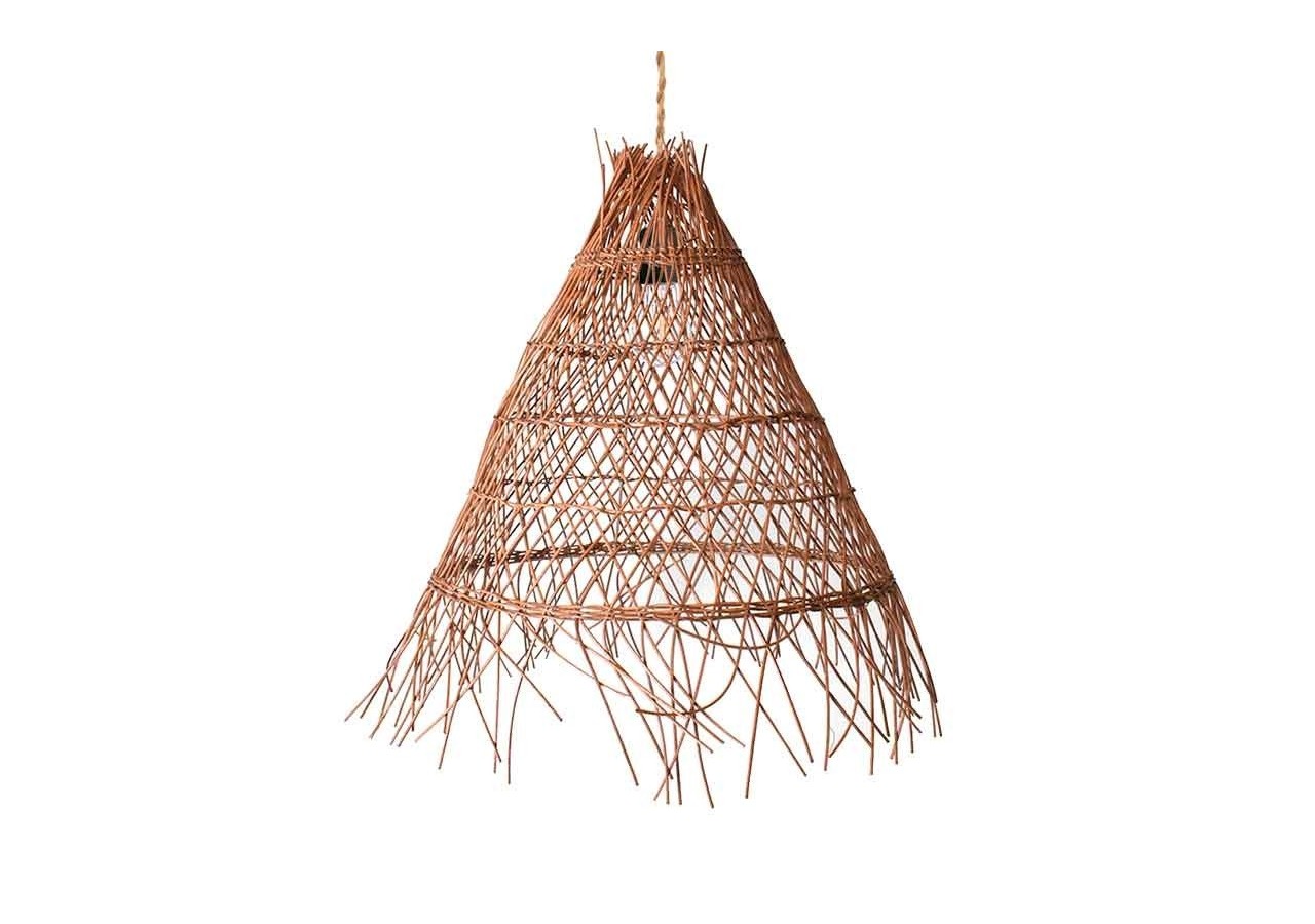 Notre lampe suspendue "Willow" est une pièce artisanale unique en forme de cloche, réalisée à la main avec des fibres d'osier naturelles, solides et durables. Son design original apporte une touche rustique et naturelle à tout espace, créant une ambiance chaleureuse et accueillante.