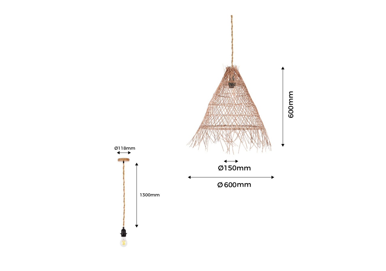 Le tissage ouvert permet une diffusion homogène de la lumière, mettant en valeur les textures naturelles de la fibre. De plus, la finition effilochée confère à la lampe une apparence rafraîchissante et chaleureuse, tout en renforçant son côté décontracté.