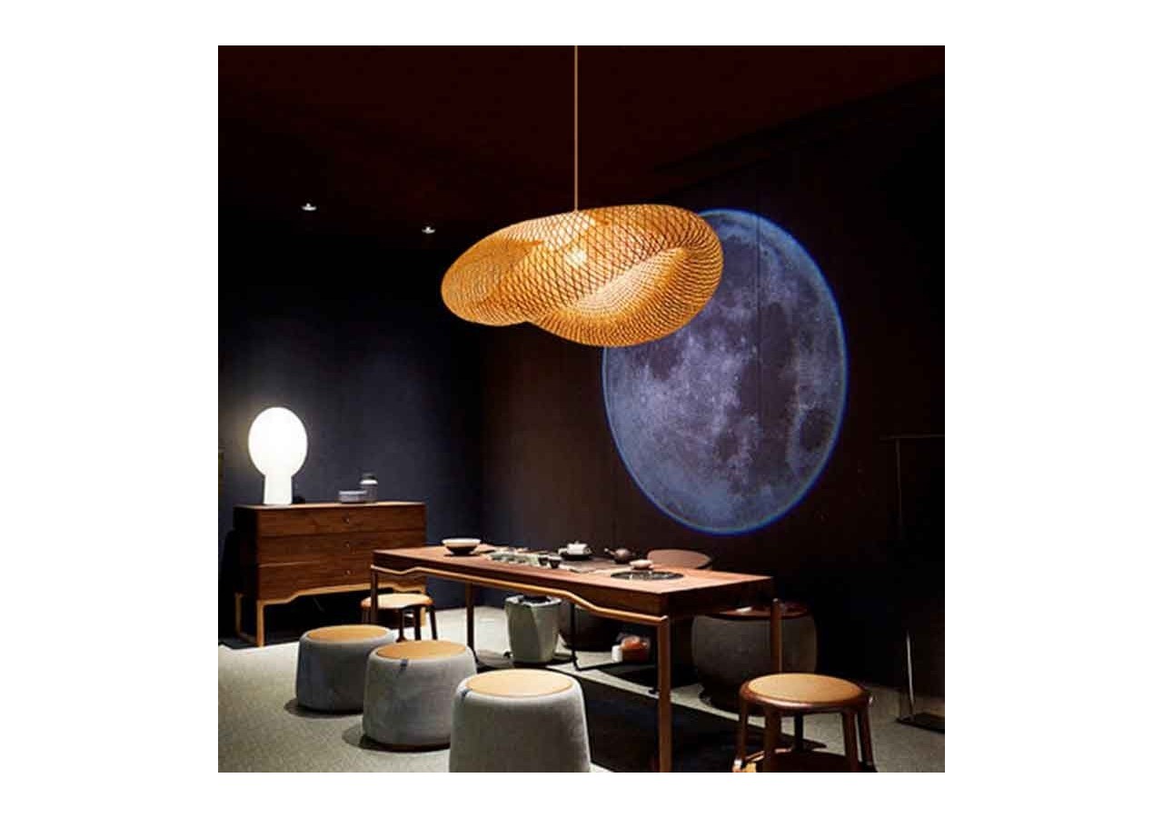 Grâce à son tissage soigneusement réalisé, la lumière se diffuse de manière douce et agréable, révélant les textures de l'osier et créant une atmosphère détendue et harmonieuse.