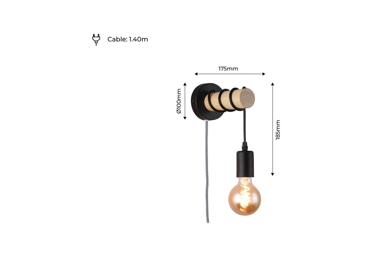 Le câble permet de personnaliser la hauteur en l'enroulant autour de la structure cylindrique en bois. Avec douille E27, ampoule E27 non incluse. Idéal pour les ampoules à filament donnant un style rétro à la lampe.