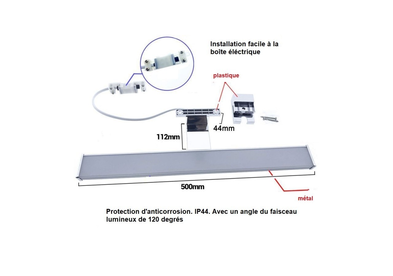 L'applique présente un design moderne et linéaire, une intensité lumineuse de 325 lumens, une puce LED SMD2835, un angle d'ouverture du faisceau de 120 degrés et un indice de rendu des couleurs optimal, IRC>80.