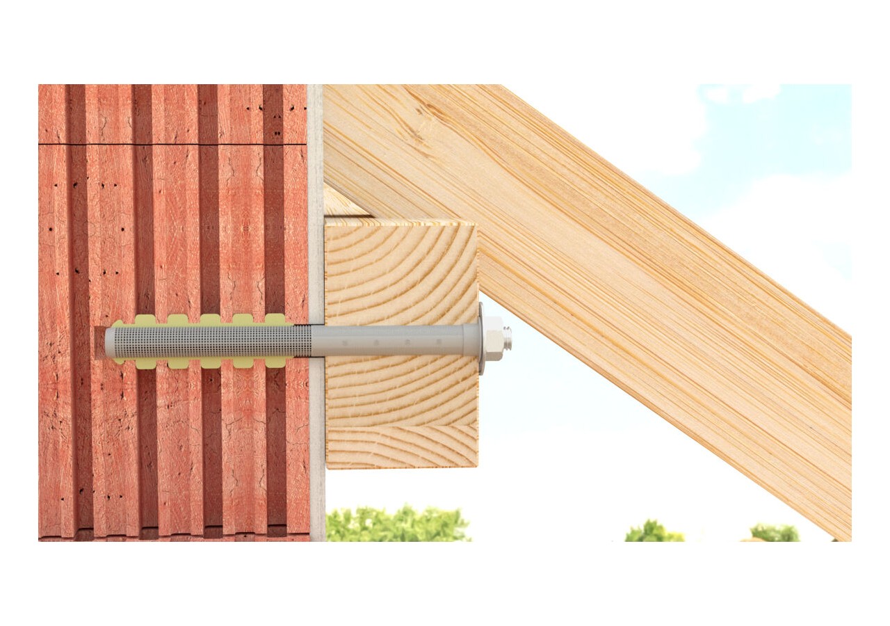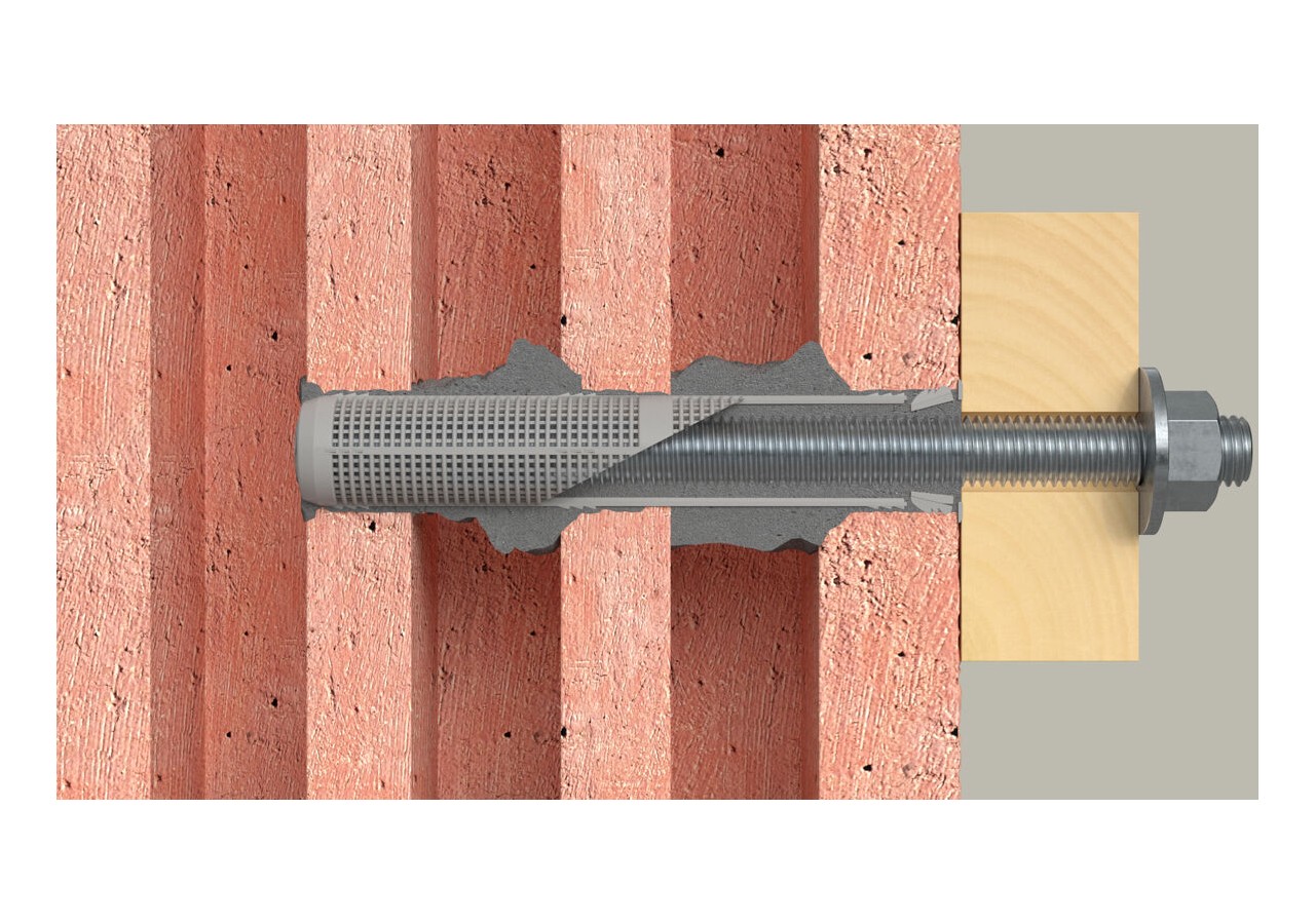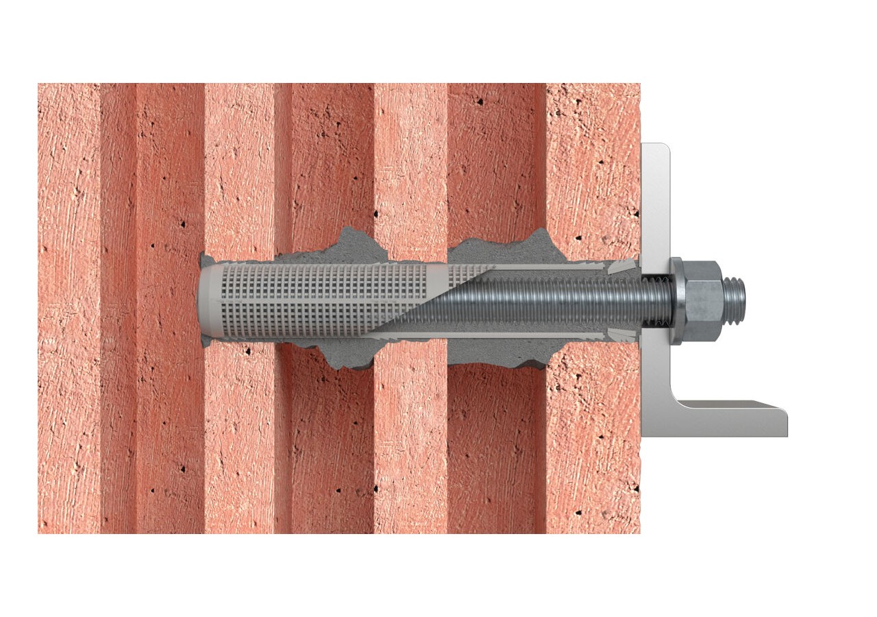 Le tamis d'injection FIS H K est le composant du système pour l'installation professionnelle et économique en résine des tiges d'ancrage FIS A ou des douilles taraudées FIP M dans la maçonnerie creuse. Les scellements par injection FIS V, FIS VW HIGH SPEED, FIS VS LOW SPEED, FIS HT II, FIS Green, et FIS Plus peuvent être utilisés avec le tamis. La structure grillagée optimisée du tamis réduit la consommation de résine. Lors de l'insertion de la tige filetée ou de la douille taraudée, la résine est comprimée à travers la structure grillagée du tamis et crée un verrouillage de forme avec la brique creuse. La charge est ainsi transférée dans le matériau support. Le tamis convient pour l'installation en attente. Les couches non portantes peuvent être traversées. Les agréments des différentes résines doivent être pris en compte.