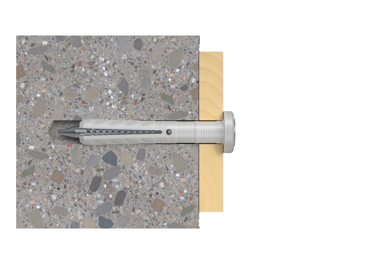 Gagnez du temps et réduisez les efforts avec un montage rapide au marteau. Le filetage du clou et l’empreinte cruciforme permettent le dévissage de la vis et un démontage ultérieur. La butée interne évite l’expansion prématurée (blocage) de la cheville et assure un montage sans problèmes.