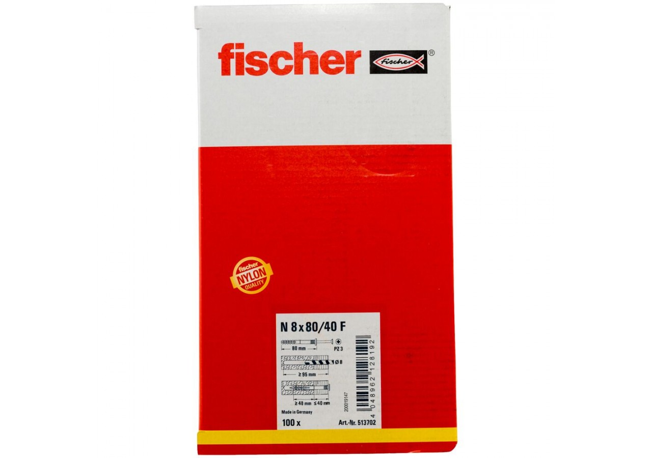 Cheville à frapper avec collerette épaisse et clou tête fraisée N 8 x 80/40 F
