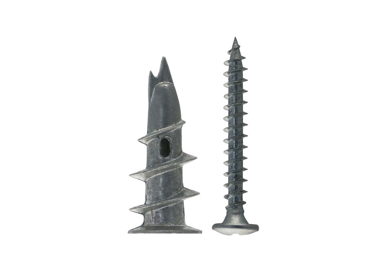 La cheville métallique auto-foreuse GKM s'ancre dans la plaque de carton-plâtre par verrouillage de forme.
